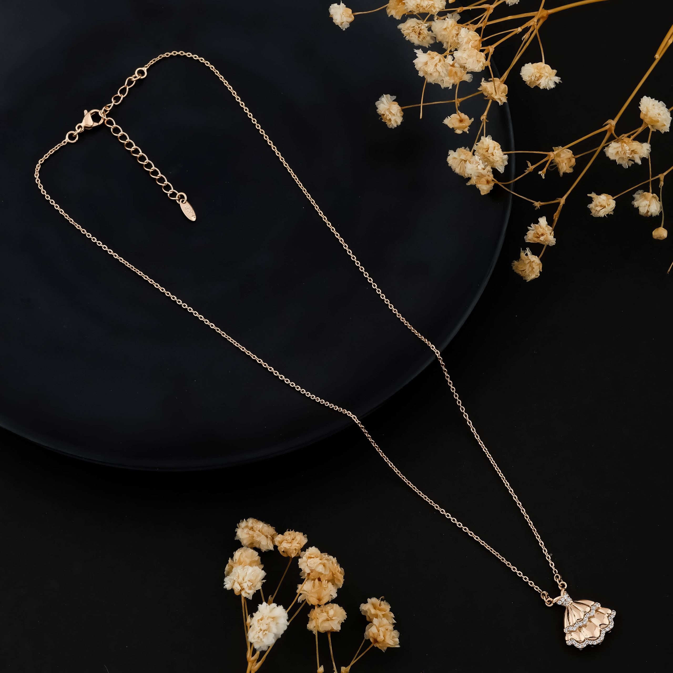 Crafted from high-quality alloy, this necklace is finished with premium gold plating that gives it a warm and polished appearance. Moreover, the anti-tarnish coating helps protect the necklace from dullness and fading. Therefore, it maintains its shine and beauty for a long time. The fine chain feels light on the skin and ensures comfortable wear throughout the day.