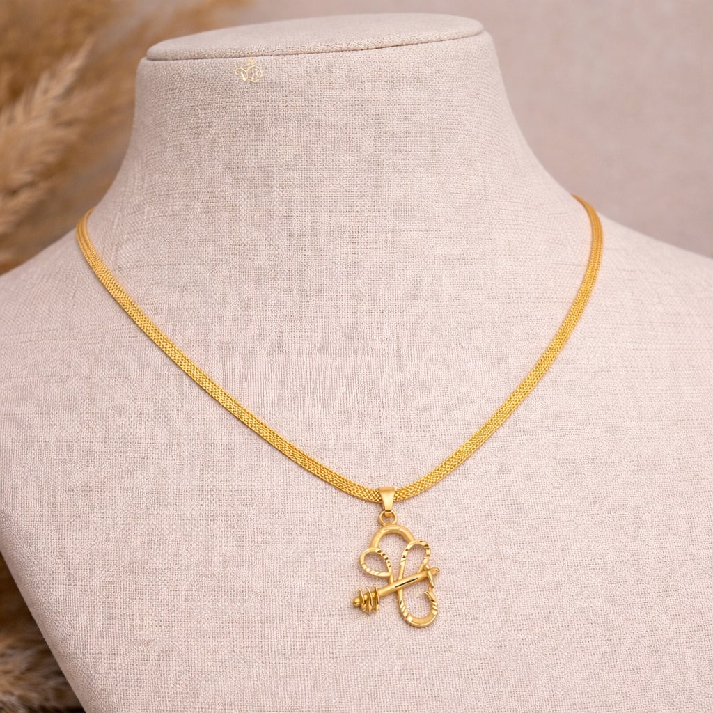 Crafted in a high-polish gold-tone metal, the pendant showcases textured detailing and smooth contours that enhance its visual depth and premium appeal. The slim link chain complements the pendant perfectly, allowing it to rest gracefully at chest level with a refined drape.