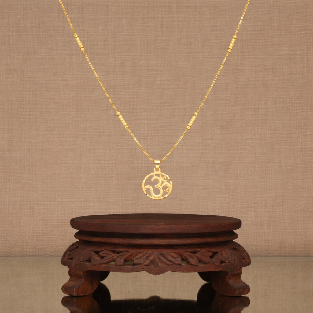This elegant pendant necklace features a finely crafted circular Om symbol, representing peace, harmony, and spiritual balance. The openwork design gives the pendant a light, refined appearance while preserving the deep traditional significance of the Om motif.