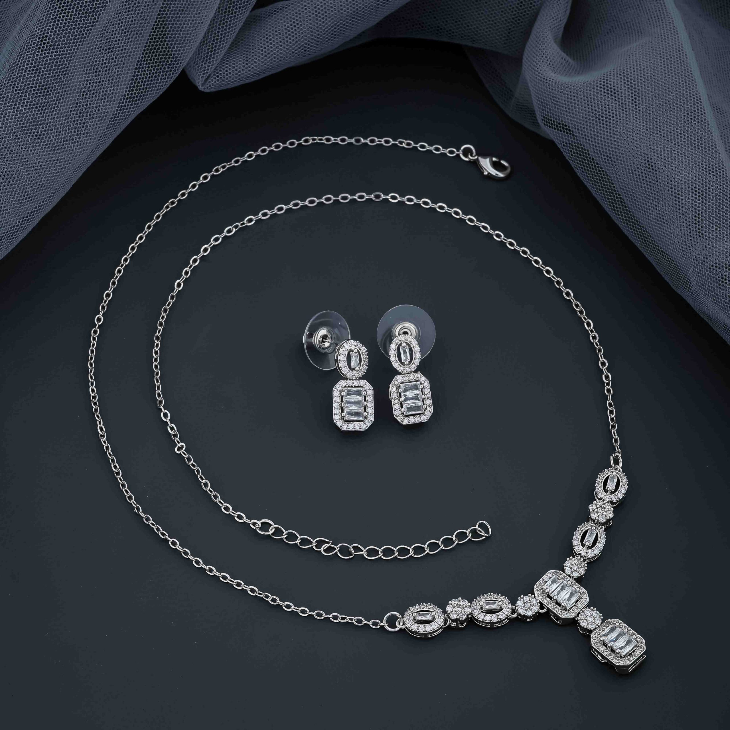 Silver Crystal Drop Statement Necklace for Women | Anti-Tarnish Party Wear NecklaceSilver Crystal Drop Statement Necklace for Women | Anti-Tarnish Party Wear Necklace